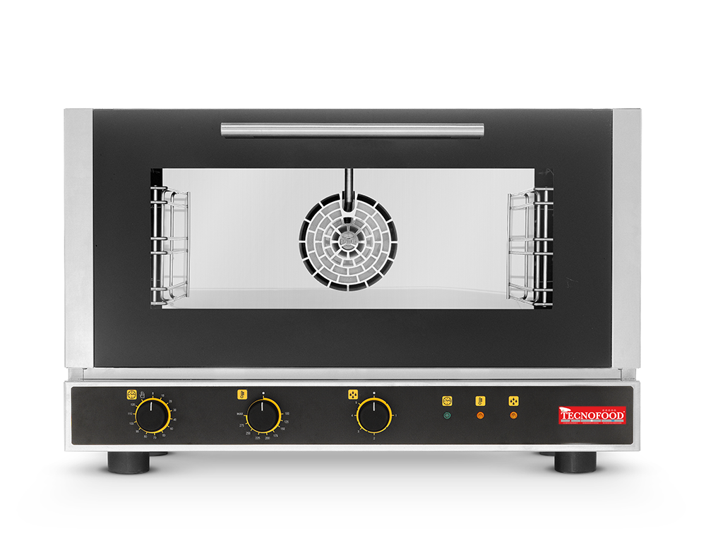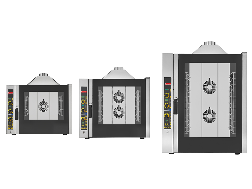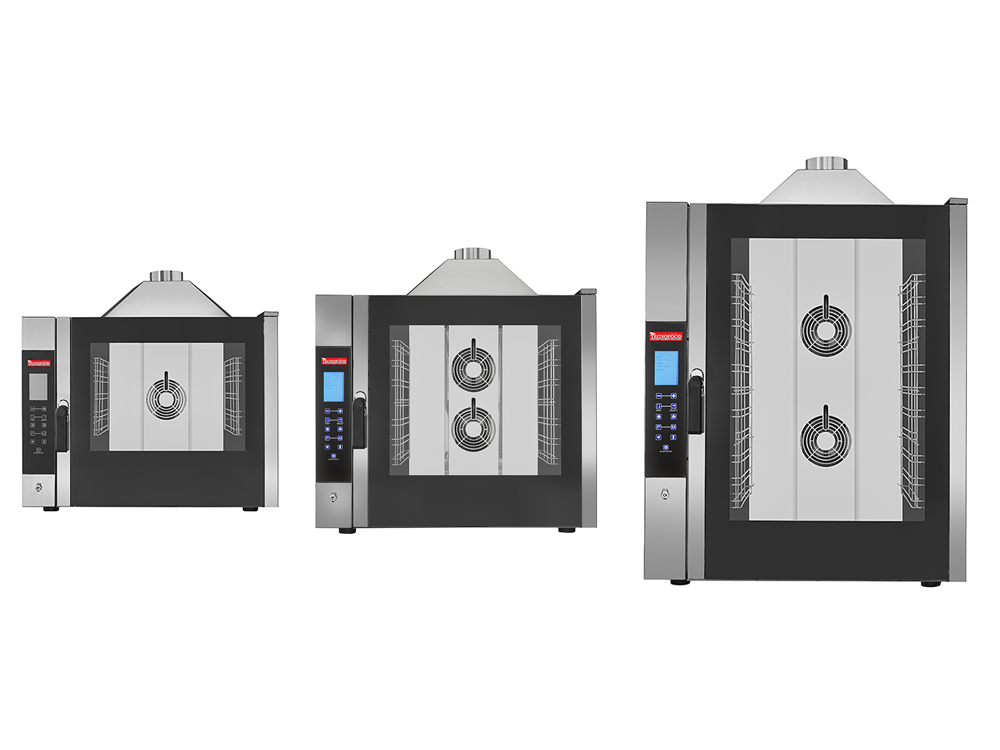 Forno elettrico a convenzione ventilato con pannello digitale e con vapore TF4EPD11 I forni a convenzione TECNOFOOD digitali programmabili hanno una struttura interamente in acciaio inox. Adatto a tutti i piccoli punti di ristoro che desiderano sfornare prodotti sempre cotti a puntino. Potrai cuocere piatti pronti, ma anche preparare ratatouille, contorni di verdure e veloci ricette di gastronomia: la funzionalità a vapore diretto consente di soddisfare ogni esigenza di cottura. Il pannello comandi digitale, con i suoi 99 programmi, ti permetterà di cuocere in 4 fasi in modo semplice e intuitivo. Il processo di pulizia della camera di cottura diventa semplice e immediato grazie alla pratica apertura laterale, che facilità anche l'estrazione delle teglie. Il forno è predisposto per il lavaggio manuale e sonda al cuore. Disponibile nella versione con 4 teglie. Marchio CE. 4xGN1/1 6,4KW 2N-AC400V Forno elettrico compatto a convenzione con Touch Control e con vapore TF10ETC11C, TF6ETC11C I forni a convenzione compatti TECNOFOOD con Touch Control hanno una struttura interamente in acciaio inox. In soli 50 cm di larghezza la linea di forni compatti racchiude in un unico prodotto grandi prestazioni, potenze elevate e risparmio energetico. Forni concepiti per ristoranti e gastronomie che devono coniugare tutta la tecnologia di un prodotto all’avanguardia con gli spazi contenuti degli ambienti di cucina. Concepito con porta USB per caricare e scaricare ricette e dati HACCP, sonda al cuore con supporto e lavaggio automatico a 4 programmi integrati. Disponibili nella versione elettrica con 6 o 10 teglie. Marchio CE 6/10XGN1/1 7,8/15,4KW 3N-AC400V Forno elettrico ventilato a convenzione con pannello elettromeccanico e con umidificazione/vapore TF4EPM11, TF4EPM11GRILL, TF4EPM12, TF4EPM23 I forni a convenzione TECNOFOOD digitali programmabili hanno una struttura interamente in acciaio inox. Le piccole dimensioni e il peso ridotto di questi forni li rendono perfetti per quei panifici, pasticcerie o gastronomie in cui lo spazio è un bene prezioso e l’energia elettrica una risorsa di cui non abusare. Disponibili nella versione elettrica con 4 teglie. I modelli TF4EPM12 e TF4EPM23 sono dotati di umidificazione. Il modello TF4EPM11GRILL è dotato della funzione grill e umidificazione. Il modello TF4EPM11 è dotato di vapore. Marchio CE. 4XGN1/2, 4XGN2/3 e 4XGN1/1. 2,6/2,8/5,2/6,4KW 1/2N - AC230/400V Forno elettrico ventilato a convenzione con pannello elettromeccanico e con vapore TF3EPM11 I forni a convenzione TECNOFOOD hanno una struttura interamente in acciaio inox. Un forno 3 teglie 1/1 GN elettrico con pannello elettromeccanico: alte prestazioni per ottenere i migliori risultati in cucina con un’eccellente uniformità di cottura e tempi veloci con conseguente riduzione dei consumi. Marchio CE. 3XGN1/1 L790XP750XH505 mm 3,7KW 1N - AC230V 45 Kg Forno a gas a convenzione con pannello elettronico e con vapore TF11GPE11, TF5GPE11, TF7GPE11 I forni a convenzione TECNOFOOD digitali programmabili hanno una struttura interamente in acciaio inox. Un forno con pannello elettronico che coniuga potenza, design e tecnologia: alte prestazioni per ottenere i migliori risultati in cucina con un'eccellente uniformità di cottura e tempi veloci con conseguente riduzione dei consumi. I forni sono predisposti per il lavaggio manuale + automatico e sonda al cuore. Disponibili nella versione con 5, 7 o 11 teglie. Marchio CE. 5/7/11xGN1/1 9/13/18KW 1N - AC230V Forno elettrico a convenzione con Touch Control e con vapore TF11ETC11, TF20ETC11, TF5ETC11, TF7ETC11 I forni a convenzione TECNOFOOD con Touch Control hanno una struttura interamente in acciaio inox. Basta il tocco di un dito sul pratico e accattivante pannello Touch per gestire con la massima facilità anche le ricette più complesse. I forni dell’intera gamma sono predisposti al lavaggio automatico della camera di cottura con 4 programmi: risciacquo, lavaggio breve, medio e lungo. I forni sono predisposti per il lavaggio manuale + automatico e sonda al cuore. Disponibili nella versione con 5, 7, 11 o 20 teglie. Marchio CE. 5/7/11/20xGN1/1 8,2/10,5/16/30KW 3N - AC400V Forno elettrico a convenzione con pannello elettronico e con vapore TF11EPE11, TF7EPE11 I forni a convenzione TECNOFOOD digitali programmabili hanno una struttura interamente in acciaio inox. Un forno con pannello elettronico che coniuga potenza, design e tecnologia: alte prestazioni per ottenere i migliori risultati in cucina con un'eccellente uniformità di cottura e tempi veloci con conseguente riduzione dei consumi. I forni sono predisposti per il lavaggio manuale + automatico e sonda al cuore. Disponibili nella versione con 7 o 11 teglie. Marchio CE. 7/11xGN1/1 8,4/16KW 2/3N - AC400V Forno a gas a convenzione con Touch Control e con vapore TF11GTC11, TF5GTC11, TF7GTC11 I forni a convenzione TECNOFOOD con Touch Control hanno una struttura interamente in acciaio inox. Basta il tocco di un dito sul pratico e accattivante pannello Touch per gestire con la massima facilità anche le ricette più complesse. I forni dell'intera gamma sono predisposti al lavaggio automatico della camera di cottura con 4 programmi: risciacquo, lavaggio breve, medio e lungo. I forni sono predisposti per il lavaggio manuale + automatico e sonda al cuore. Disponibili nella versione con 5, 7 o 11 teglie. Marchio CE. 5/7/11xGN1/1 9/13/18KW 1N - AC230V Forno elettrico a convenzione per brioches TF4EPM23B I forni a convenzione per brioches TECNOFOOD con pannello elettromeccanico hanno una struttura interamente in acciaio inox. Design compatto e minimale per un forno che ti consentirà di dare libero sfogo alla creatività con un semplice tocco. Il massimo della tecnologia per un forno innovativo, con materiali di altissima qualità che ne garantiscono un grande isolamento termico e la resistenza ai getti d’acqua. Disponibile nella versione elettrica con 4 teglie. Marchio CE 590x695x590 mm 4XGN2/3 (429x345 mm) 2,8KW 